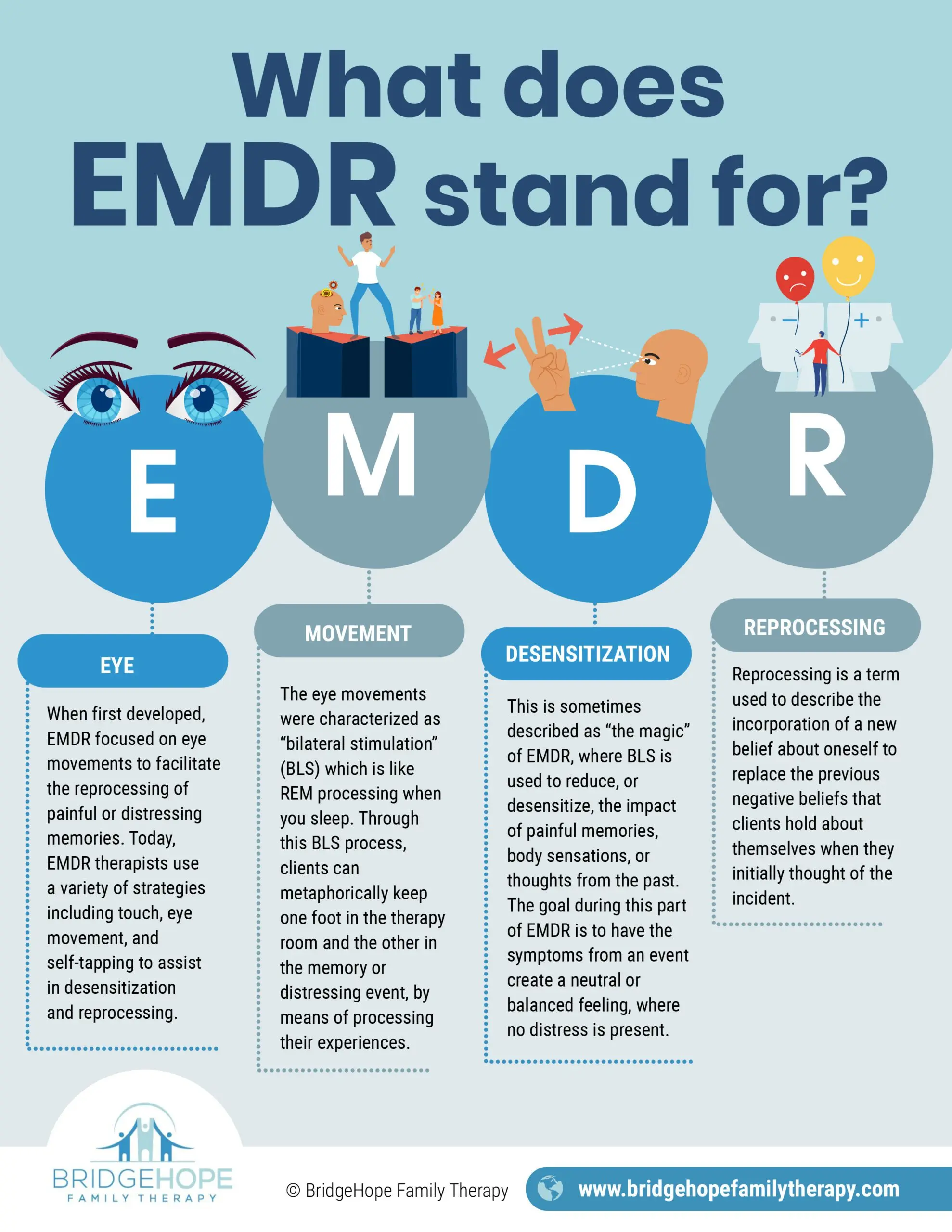 EMDR is based on the Adaptive Information Processing (AIP) model, which views psychological symptoms as a sign of unprocessed memories. When trauma happens, the brain’s natural ability to heal can get blocked.